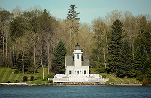 5. Viewing Information: A small lighthouse on a rock in the river. It can only be seen by boat.